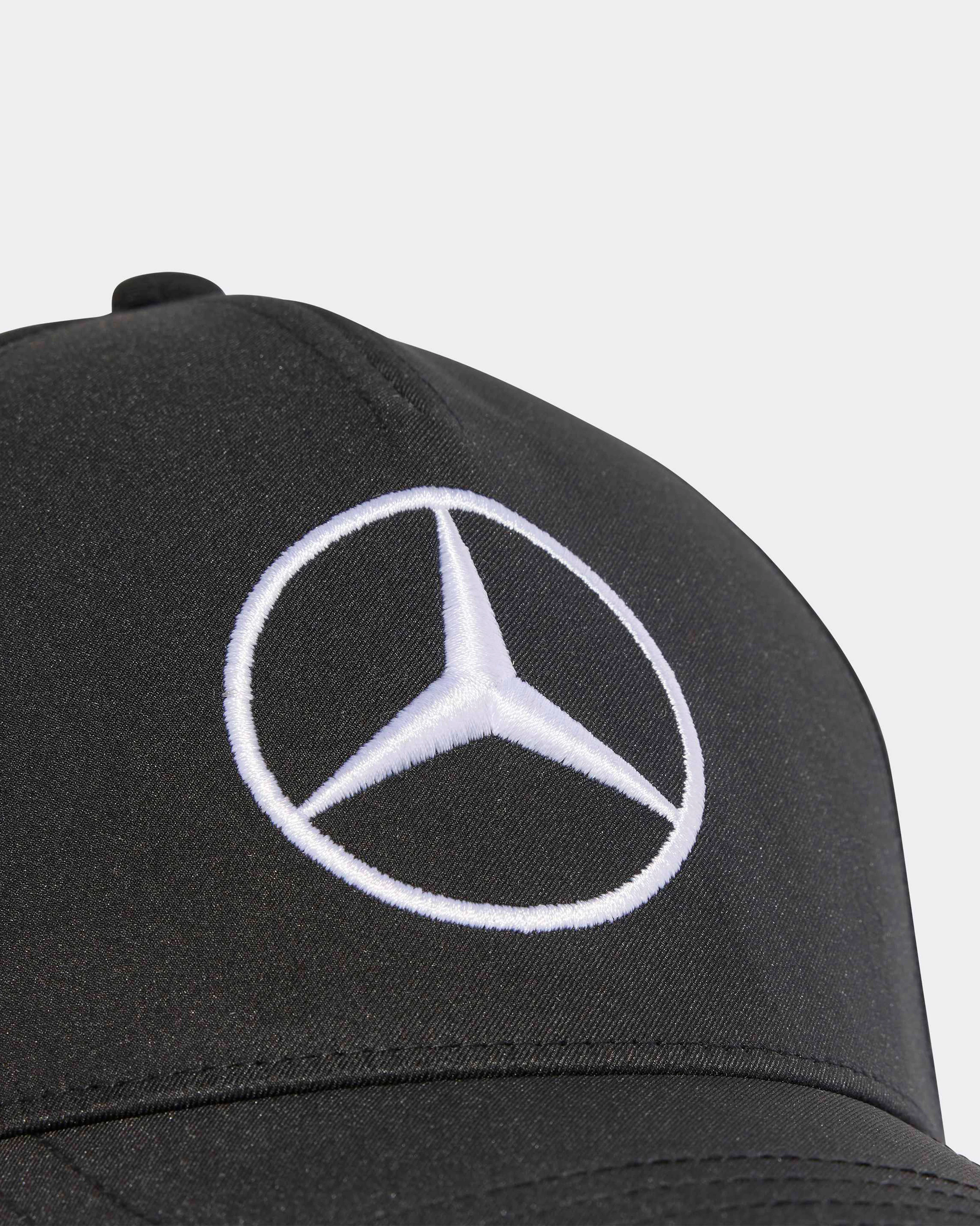 The medium curved visor and brim add a contemporary touch to the classic shape, while the iconic Mercedes star is proudly displayed on the front panels.